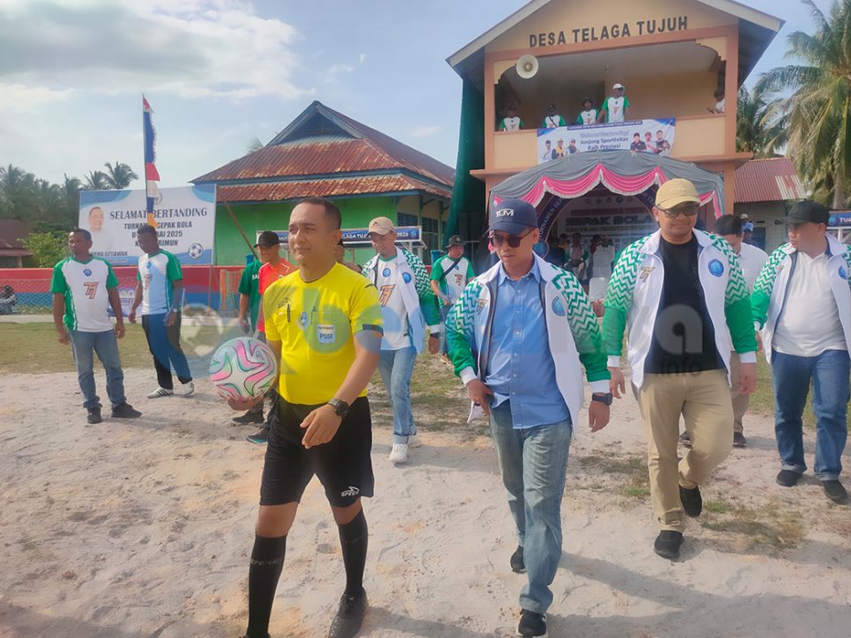Karimun, beritakita.info- Bupati Karimun Iskandarsyah membuka secara resmi Turnamen Sepak Bola Desa Telaga Tujuh Terbuka 2025 di Lapangan Sepakbola Desa Telaga Tujuh Kecamatan Durai Kabupaten Karimun Provinsi Kepulauan Riau, pada Minggu (19/10/2025) Siang.