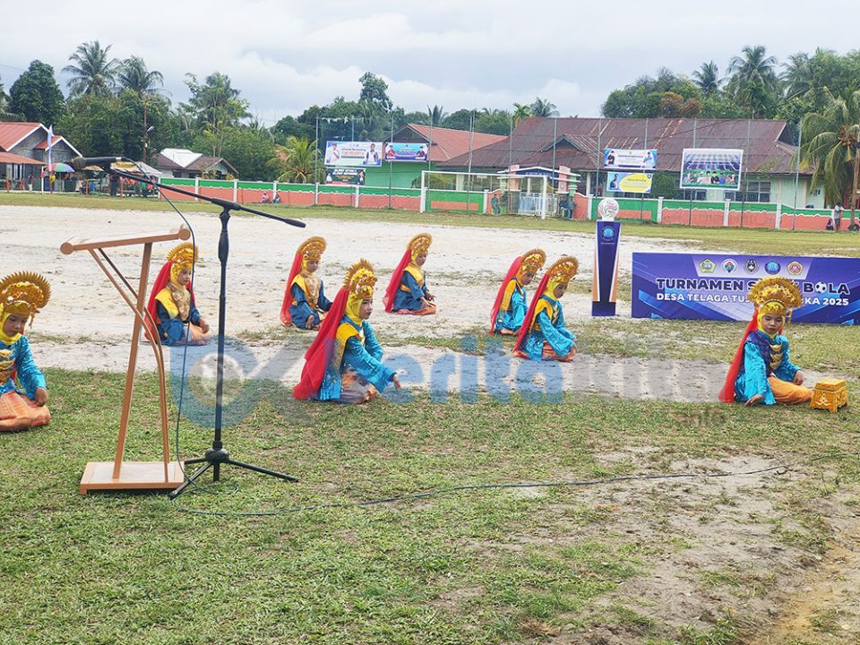 Pembukaan turnamen tersebut disambut meriah dengan puluhan siswa siswi dari SMA Negeri 1 Durai yang menampilkan tarian yang dipadukan dengan senam biasa yang dikembangkan dengan musik dan tarian yang kreatif, dengan membentuk formasi huruf dan angka T7 yang artinya Desa Telaga Tujuh.