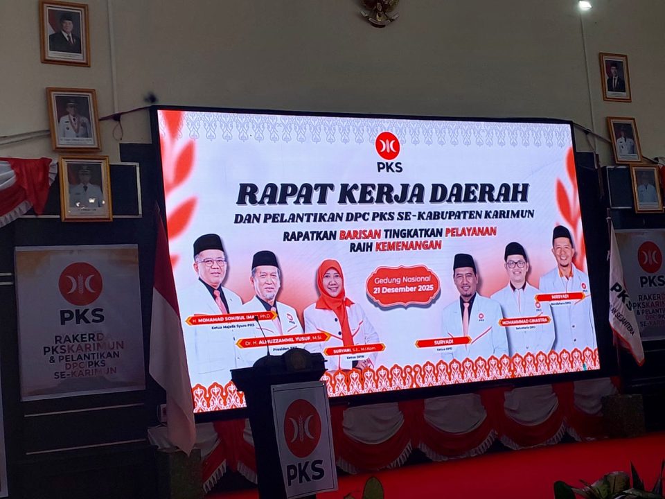 Karimun, beritakita.info– Dewan Pimpinan Daerah (DPD) Partai Keadilan Sejahtera (PKS) Kabupaten Karimun menggelar Rapat Kerja Daerah (Rakerda) Tahun 2025 sekaligus pelantikan Dewan Pimpinan Cabang (DPC) PKS dari 14 kecamatan se-Kabupaten Karimun. Kegiatan tersebut berlangsung di Gedung Nasional Karimun, Minggu (21/12/2025) pagi.