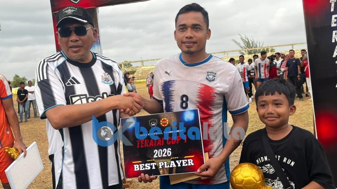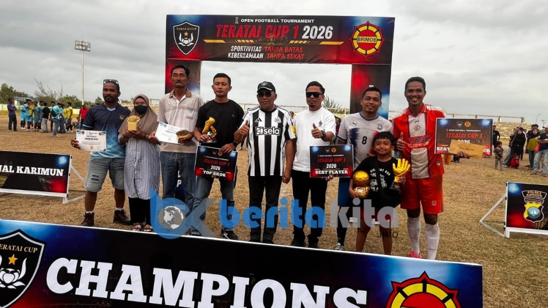 Karimun, beritakita.info- Turnamen sepak bola Teratai Cup 1 tahun 2026 resmi ditutup pada hari Sabtu (25/1/2026) sore. Setelah berlangsung sejak 2 Januari lalu, ajang yang diikuti 42 tim dari Kabupaten Karimun dan Kabupaten Meranti berhasil mengukir sejarah dengan antusiasme masyarakat yang luar biasa hingga memenuhi tribun utama.